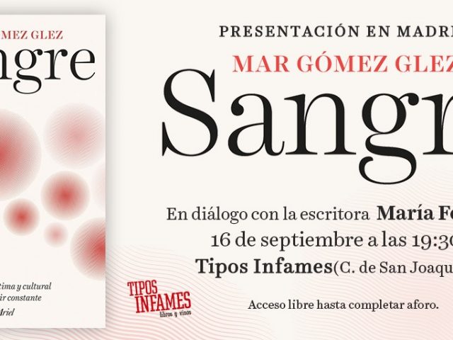 El día 16 de septiembre a las 19:30h en «Tipos infames». Más info: https://www.tiposinfames.com/agenda/sangre-de-mar-gomez-glez/4869/